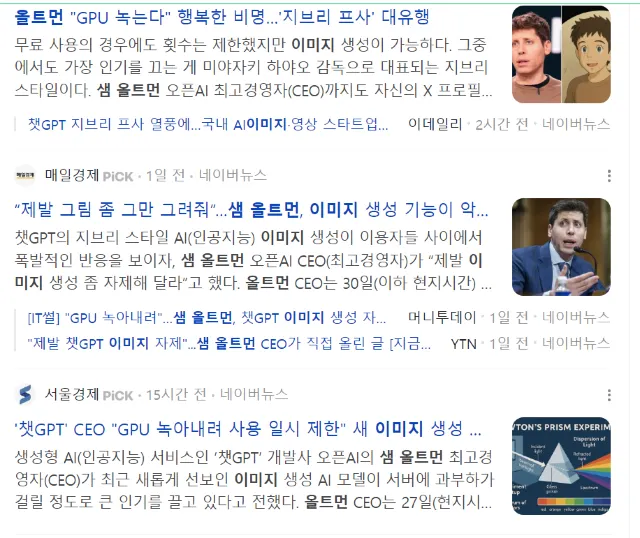 CEO 샘 올트먼은 "그래픽 처리 장치(GPU)가 과열되고 있다"며, 일시적인 무료 사용 제한을 걸 수밖에 없었다고 언급했어요. 현재는 사용자가 많이 몰리는 시간대에 일부 기능이 제한될 수 있다는 점, 참고하셔야 할 것 같아요.