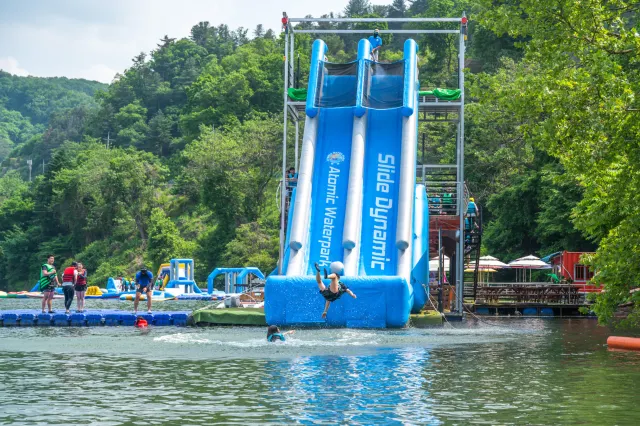 세 번째로 소개드리는 가평 빠지는 아토믹 수상레저 입니다. 생소하신 분들도 계시겠지만 최근 SNS에서 벌써부터 화제가 되고 있는 가평 빠지 중 하나인데요. 가장 뜨거운 여름을 사막의 오아시스처럼 시원하게 날려버릴 수 있다는 가평 빠지, 아토막 워터파크! 가평역에서 5분 거리에 위치한 가평 빠지 아토믹은 약 3,000평 규모의 초대형 워터파크가 있는 곳인데요. 15종의 최신형 놀이기구까지 있어 다양한 놀이기구를 통해 재미를 느끼실 수 있습니다. 게다가 최근2025년, 리뉴얼 되어 더욱 새롭고 재미있는 놀이기구와 다양한 워터슬라이드, 물 위의 워터 페라리 제트 보트가 운영될 예정으로 눈 앞에서 잠수하는 제트 보트를 만나볼 수 있으니 이건 안 가볼 수 없겠죠?