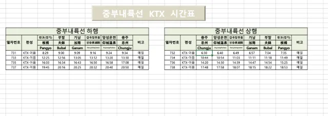 - 1. KTX 경부선 열차 시간표 (서울 ↔ 부산)