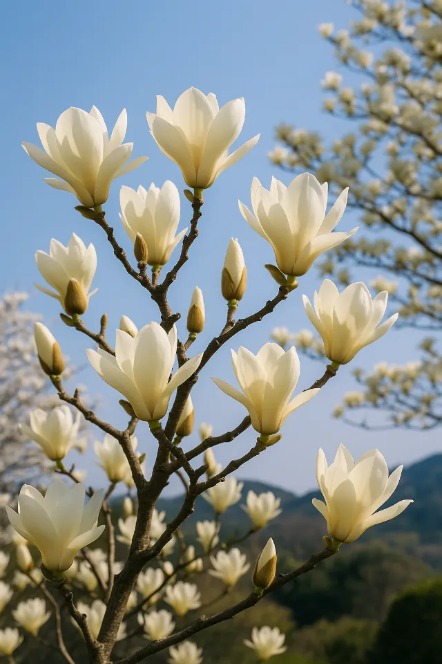 목련은 봄의 전령사로 불리며, 나무 위에 피어나는 커다란 꽃송이와 우아한 자태로 많은 사람들의 사랑을 받는 꽃입니다. 특히 태안 지역에서는 봄철에 목련이 만개하여 아름다운 풍경을 만들어냅니다. 목련의 꽃말은 "고귀함", "숭고한 마음"인데요, 그 이유는 목련이 다른 꽃들보다 일찍 피어나며, 기품 있고 고상한 모습으로 만개하기 때문이에요.