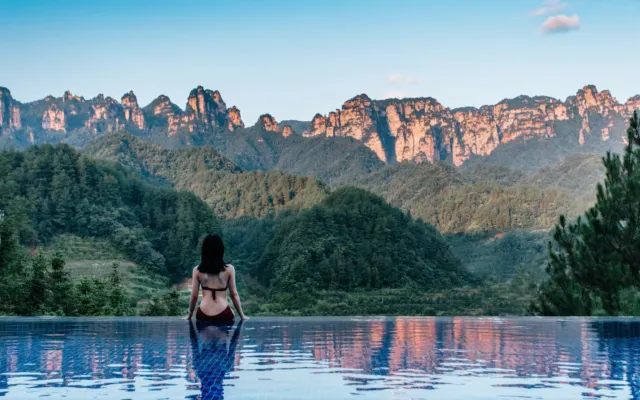 특히 풀에서 바라보는 자연 경관은 매우 아름답기로 알려져 있어서, 장가계 여행하시는 분들은 한번쯤 방문해보셔도 좋을 것 같아요.