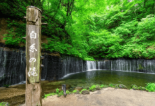 가루이자와 여행명소인 시라이토 폭포는 폭포가 떨어지는 모습이 흰 실(시라이토) 같다는 것에서 유리되었어요. 1936년부터 국가 명승이자 천연기념물로 지정되어 보호되고 있으며 일본 폭포 100선, 일본 3대 명폭포로 선정되었습니다. 폭포가 울창한 숲으로 둘러싸여 있어 사계절 내내 아름다운 풍경을 자아냅니다. 여름에는 무성하고 푸르고, 가을에는 화려하게 단풍이 물들고 눈 덮인 겨울에는 고요하고 위엄이 느껴집니다. 경치를 즐기며 산책로를 따라 걸어보세요.