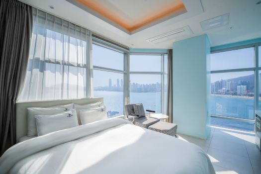 객실은 커플 여행객을 위한 디럭스 시티 킹룸부터 가족·단체 여행객, 최대 10인까지 함께 머물 수 있는 펜트하우스까지 다양하게 준비되어 있어요. 수평선 너머의 풍경과 정제된 공간미가 어우러진 이곳에서 부산 여행의 여유를 만끽해 보시길 바랍니다.