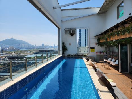 2024년에 오픈한 신상 호텔로, ‘명상’과 ‘쉼’을 중심으로 한 감성적인 콘셉트가 돋보이는 부산 감성 숙소인데요. 이곳의 하이라이트는 ‘피스 오아시스’라 불리는 명상탕! 체크인 시 사전 예약을 통해 6가지 아로마 오일 중 하나를 선택해 45분간의 명상 프로그램을 즐길 수 있어요. 루프탑 야외풀에서는 건물 사이로 보이는 광안대교의 야경을 감상할 수 있고, 1층에서는 푸짐한 조식도 맛볼 수 있습니다.