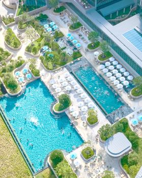 객실은 자연을 닮은 우드톤 인테리어와 넓은 테라스, 프라이빗 욕조로 꾸며져 있어요. 인피니티 풀에서는 끝없이 이어지는 바다를 배경으로 수영을 즐길 수 있고, 실내·야외 수영장, 사우나, 피트니스 시설 등 부대시설도 완벽하게 갖춰져 있어요.