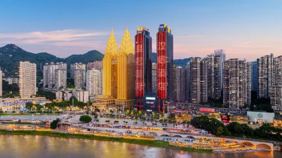 충칭의 대표 관광지인 홍야동 인근에 위치한 호텔은 야경을 감상하기에 완벽한 위치입니다: