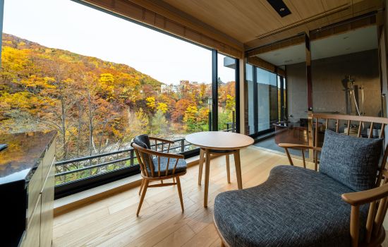 모리 노 우타는 총 56개의 객실을 보유하고 있는 삿포로 료칸으로 노천탕이 있는 별동 코티지, 디럭스룸, 스탠다드 룸 등 다양한 객실 타입이 있어 여행에 맞게 선택 가능합니다. 노천탕이 있는 코티지는 마치 숲과 연결되어 있는 듯한 별동으로 프라이빗하게 조잔케이 온천을 즐길 수 있는 호화로운 객실입니다. 모든 객실이 일본식 다다미 풍의 공간이 있고, 서양식 객실으로 전통 체험부터 편안함까지 생각하였습니다. 또, 애견과 함께할 수 있는 객실에는 반려견이 마음껏 뛰어놀 수 있는 정원이 있고, 단차를 없앤 장애인용 객실이 있습니다.