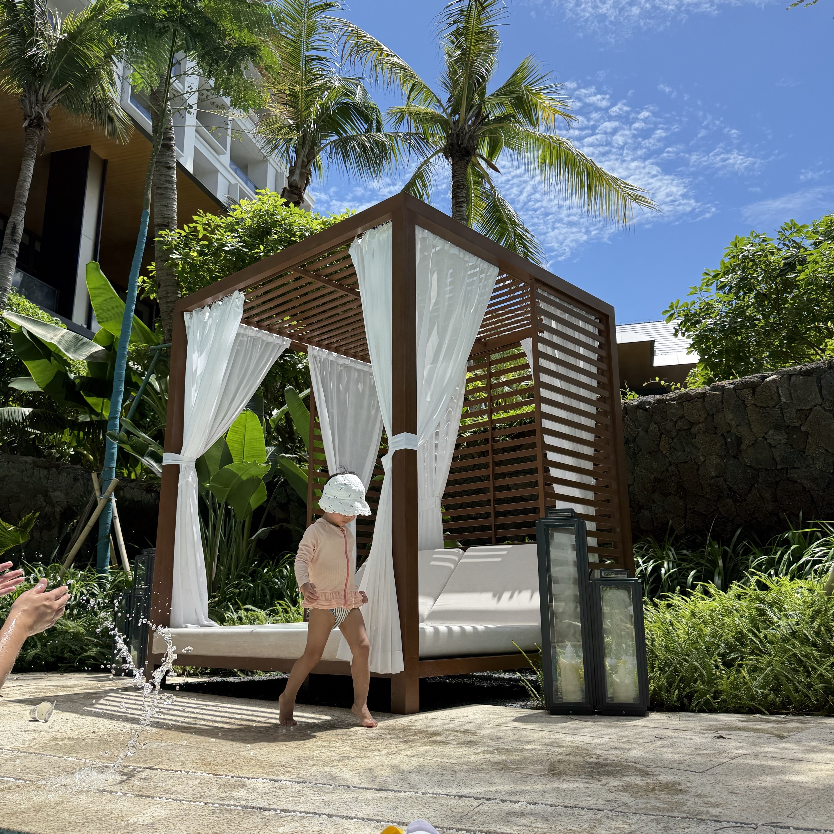 이 호텔은 전반적으로 서비스가 좋았고, 위챗으로 집사(concierge)와도 바로 연락이 닿았습니다. 아이들이 많지 않아서 공용 수영장을 아주 시원하게 이용할 수 있었어요. 아이들과 함께 북적이는 인파를 피해 방문하기에 좋은 곳입니다.