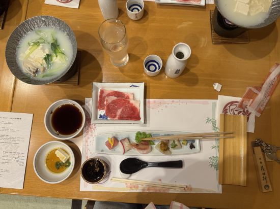 位置很好,就在渡月橋旁邊,樓下是嵐山站。環境好,餐超級棒。温泉沒有感受,不喜歡公眾,私湯人多排不上。