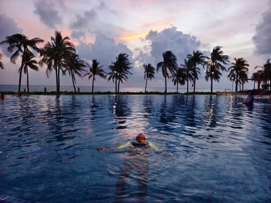 위치는 조용하고 야시장에 가까워서 좋고 바다와 이어지는 수영장에서 바라보는 선셋이 아름다움