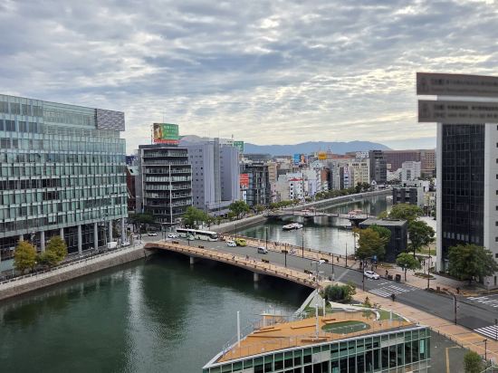 위치는 텐진도 가깝고 캐널시티도 도보로 이동할 수 있어서 여기저기 다니기에는 좋습니다. 리버뷰가 정말 좋고 창밖을 보고 있으면 힐링이 되었어요. 하지만 청결에 예민한 사람은 안오는 게 좋습니다