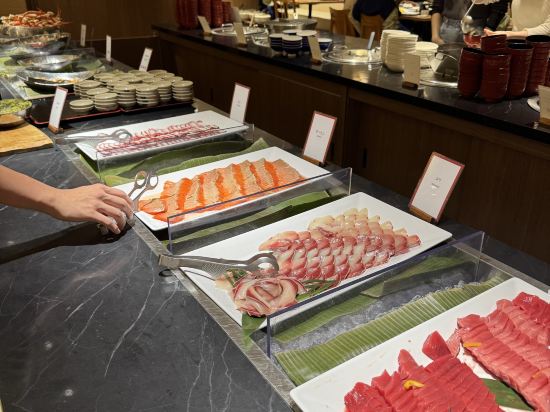 해산물 뷔페 저녁 식사도 매우 좋습니다. 매일 참치와 눈 게가 있습니다.