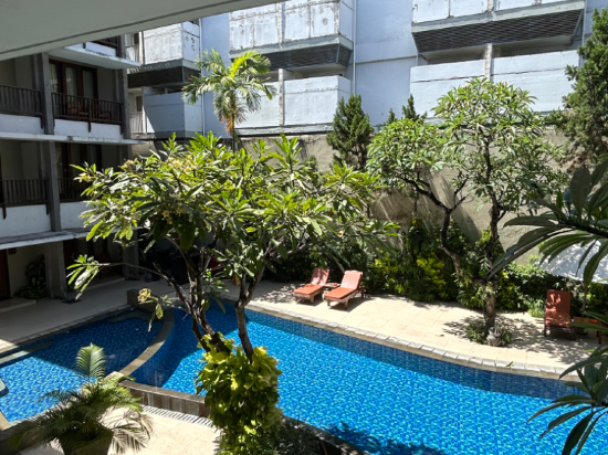 꾸따해변 끝자락에 있고, 가격이 저렴해요. 꼭 조식 포함해서 신청하세요. 과일과 샐러드 좋아요
