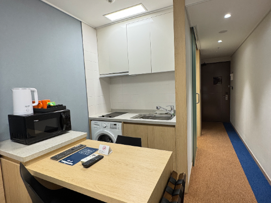 비행 시간을 고려해서 하루 쉴 예정으로 숙박함. 주차장도 있고 체크인 대응도 갠찮았음. 훔음 아담하지먼 세탁기와 키친이 있었음. 단 방음이 생각보다 않좋음 새벽 1시넘어까지 옆방 떠드는 소리가 둘람. 천장 시스템 에어컨? 히터? 팬소리가