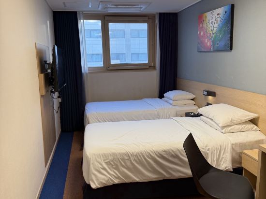객실은 넓고 깨끗하며 시설이 잘 갖추어져 있으며 특히 욕실의 수온과 수압은 훌륭합니다. 그러나 공항 셔틀 버스는 유료 (KRW 4000 / 편도)이며 지하철을 선택하는 것이 좋습니다. 1 번 터미널까지 2 정거장, 요금은 더 비용 효율적이며 (KRW 1200) 매우 편리합니다.