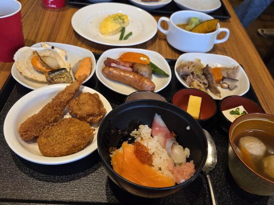 셀프체크인하는데 한국말로 도와주시는분있고! 객실도 깔끔하고 저녁이랑 아침에 대욕장 노천탕이용할수있어서 너무 좋았어요 저녁 라면도 맛있고 아침에 조식이 정말👍🏻 카이센동 조식으로 먹는게 푸짐합니다😊