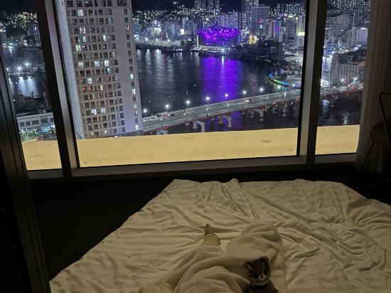 뷰도 너무 좋았고 직원분들도 너무 친절하셨습니다 :) 덕분에 좋은 곳에서 잘 쉬다갑니다~ 호텔 꼭대기층에 바도 너무 좋았어서 꼭 가보시는 걸 추천드려요