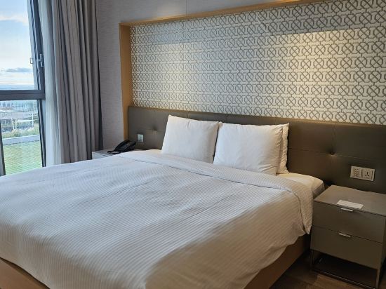 버스정류장이 가깝고 배차가 괜찮은 편이라 뚜벅이가 이용하기 좋았어요. 직원분들도 너무 친절하셨어요~리조트형 호텔이라 안전하고 편의성이 훌륭합니다. 객실도 깔끔하고 욕실이랑 침구도 청결했어요. 침대가 크고 편안해서 잘 잤습니다. 뷰도 생각보다 좋았어요.