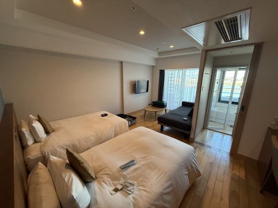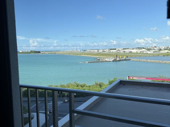 오션뷰 객실에서는 탁 트인 바다 전망이 펼쳐지고, 테라스나 노천탕에 앉아 있으면 나하공항을 오가는 비행기들이 바로 눈앞에서 착륙하는 모습을 감상할 수 있습니다. 비행기 구경을 좋아하는 분들에게는 최고의 뷰라고 생각합니다.