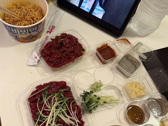 룸서비스로 갈비탕 갈비찜을 주문했는데 너무 비싸도 애기 먹인다는 생각으로 시켰는데, 고기가 부드럽고 양고 많고 맛있어서 오히려 가성비로 느껴졌습니다.