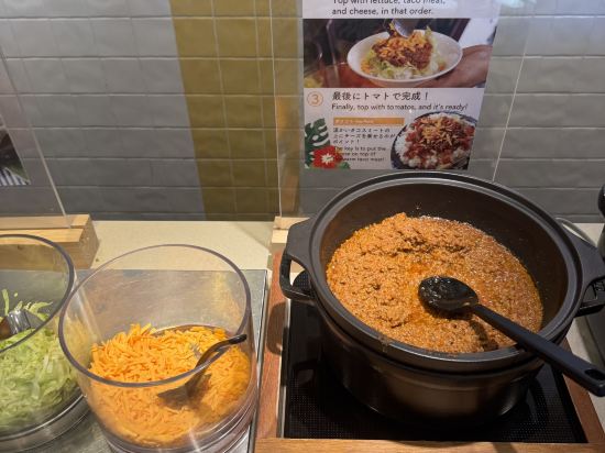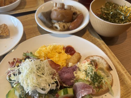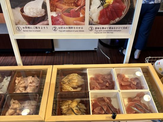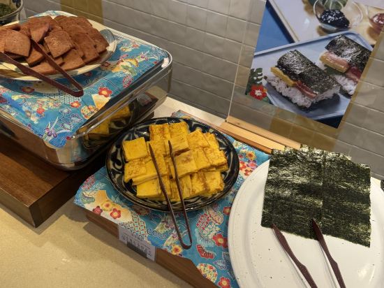 아침 식사에는 많은 종류가 있으며 대부분이 주식이며, 파라 라이스, 우동, 오키나와 인기 돼지 고기와 계란 주먹밥도 직접 만들 수 있으며, 푸른 물개도 무료로 제공되며 기본적으로 모든 오키나와 특선 요리가 여기에서 먹을 수 있습니다.