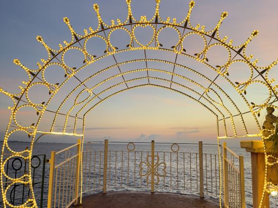 다리를 건너 아래층으로 내려가면 일몰 해변이 매우 가깝습니다.