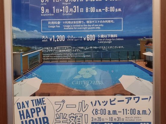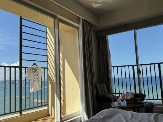 9월 1~2일 1박. 별관 9층 오션뷰 배정받았는데 깔끔하고 20인치 캐리어 2개 펴고도 2인이 지내기에 충분히 넓고 좋았어요. 해변과 이어져 있어 바다에서 노는 사람 많았으나 전 바다 수영을 하지 않아 수질은 모르겠지만 위치는 너무 좋았습니다. 아메리칸 빌리지에 있는 숙소라 나서자마자 구경 가능. 맛집 많고 해변 산책에도 좋았어요. 별관 숙소에 있는 수영장, 대욕장도 좋았어요. 수영장은 그리 크진 않지만 수온 수질 괜찮고 오후 6시쯤 가니 한적하니 좋았어요. 수영 1일 이용권 1200엔 구매로 여러번 이용가능했고 썬베드, 비치타올, 탈의실, 샤워실, 히노키탕 있어요. 수영장에서 바라본 노을은 잊지못할것 같아요. 대욕장은 정말 추천해요. 숙박객 무료로 이용가능하고 대욕장에서 바라보는 전망이 너무 좋았고, 넓었어요. 대욕장에 타올, 드라이기, 스킨, 로션, 폼클렌징, 샴푸, 린스, 바디워시 다 구비되어있어요. 조식도 종류 많고 맛있었어요. 조식에 스시 나오는 호텔은 처음이네요 ㅎ 직원들 친절했고 한국어 가능한 직원이 있어 반가웠네요 ㅎ 다시 찾고 싶은 숙소입니다