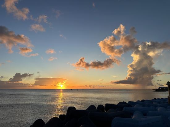 호텔은 매우 깨끗하고 아침 식사 옵션이 많이 있습니다. 일몰 해변은 이제 약간 썰물이지만 물에 들어갈 수도 있습니다.