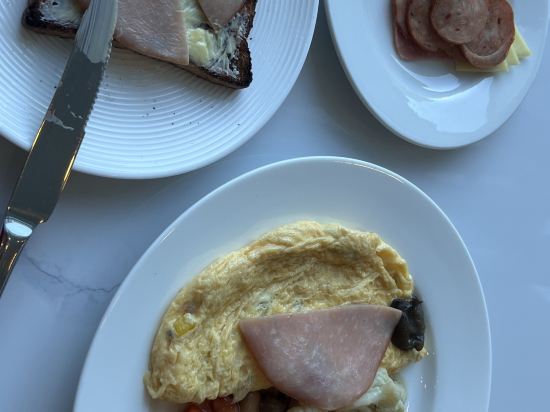 호텔의 위치는 매우 좋지만 불행히도 아침 식사는 종류가 적을뿐만 아니라 맛은 평균이며 많은 요리도 형식적입니다. 가장 대표적인 것은 계란말이로, 계란 케이크처럼 만들어지면 맛이 더 나쁩니다.