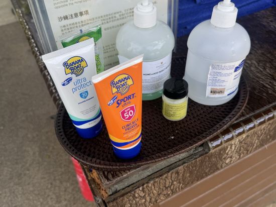 오후에는 수박을 꼬치에 꽂아서 수영장에서 쉬고 있는 사람들에게 한 사람당 2개씩 무료로 제공해주었습니다.