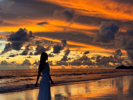 호텔의 전용 해변은 일몰과 함께 매우 좋습니다. 우리가 간 날은 비가 조금 내렸고 해변은 바다와 일몰과 함께 끝없이 펼쳐져 있었고 갑자기 스타 횡단 영화의 느낌이 들었습니다.