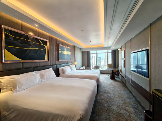 호텔 자체에 대해 말하면 체크인 당일도 매우 매끄럽습니다. 프론트 데스크의 잘 생긴 남자는 우리를 45 층으로 업그레이드했습니다. 처음에는 보증금을 청구하겠다고 말했지만 보증금을 지불하고 싶지 않다고 말했을 때 면제 할 수 있다고 말했습니다. 인간화. 호텔 객실은 매우 넓고 객실에는 커피 머신이 있으며 객실의 전망도 일류입니다. 야경은 나에게 놀라운 느낌을주지 않지만 호텔의 문제는 아닙니다. 호텔의 또 다른 매우 화려한 장소는 풍부하고 절묘한 아침 식사입니다. 각 지역은 전 세계 손님의 식문화를 돌보고 있습니다. 그 중 어느 날은 쓴 멜론 수프를 먹었습니다. 이것은 매우 정통 광동 요리입니다. 그리고 아침 식사 요리는 매일 바뀌고, 내가 가장 좋아하는 것은 매우 신선한 서양식 빵입니다. 어머니는 30 년 이상 5 성급 호텔에서 일했으며 아침 식사를 위해 매우 열심히 일했다고 칭찬했습니다.