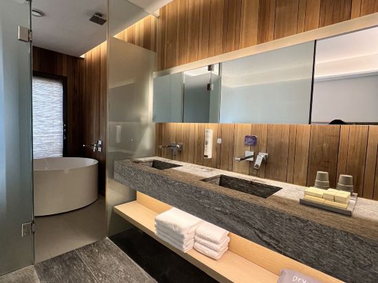 객실이 넓고 여유있음. 화장실 넓고 세면대가 두개라 정말 편했음. 유리문으로 가려져서 실루엣이 보이니 편한 사이가 아니라면 좀 민망할 수 있음 ㅎㅎ