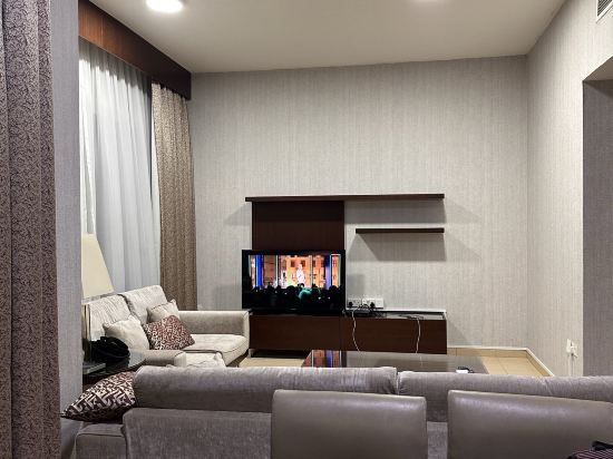 우리는 9월 18일부터 20일까지 배우자와 함께 있었습니다. 정착(14:00부터) 40분을 기다려야 했다. 하지만! 아파트 수준은 무료로 증가했습니다. 내가 우리 방에 충격을 받았다고 말하는 것은 말할 것도 없습니다. 7층 701 아파트. 150미터 아파트 면적! ))). 욕실 3개, 침실 2개, TV가 있는 거대한 거실과 완비된 주방! 또한 가구가 비치된 발코니와 테라스(테이블과 의자)