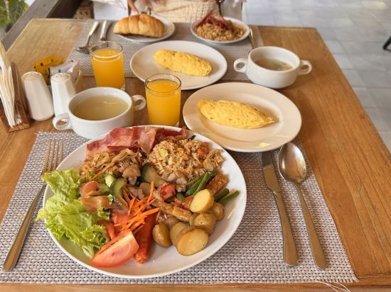 만족, 만족, 수영장은 매우 행복합니다. 아침 식사는 맛있습니다.