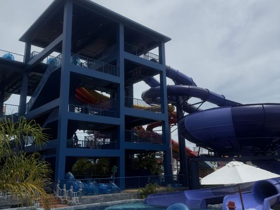 워터파크를 생각하고 많이 가실텐데 생각보단 만족스러웠음. 오션월드 미니 버전. 파도풀은 안하는건지 없는건지 파도풀 처럼 생긴 곳이 운행을 안했음. 유수풀은 매우매우매우매우 느려서 튜브에 몸을 맡기면 앞으로 잘 안감. 워터파크의 묘미 맨몸슬라이딩과 튜브슬라이딩은 생각보다 재밌음. 단, 4인용 거대튜브를 제외한 모든 장비는 직접 1층에서 들고 올라가야하기 때문에 물에 젖은 몸으로 1인 혹은 2인용 튜브를 매번 들고 4층(2인튜브슬라이딩,맨몸슬라이딩), 5층(4인튜브슬라이딩,2인튜브슬라이딩 등등) 올라가는게 굉장히 고됨. 그래도 대기는 최대3분? 아니 2분임. 유아용 놀이터 풀도 있으며 유아용 슬라이딩도 따로 구비되어 있음. 음식값은 워터파크니 푸켓물가에 비해 사악하지만 오션월드를 생각한다면 나쁘지 않음(스파게티+피자+음료2개 세트 18,000원 정도).