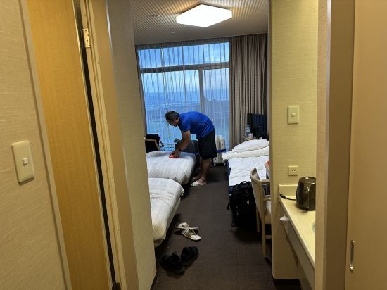 그런데 많은 단체 관광객이 찾아오고 조식 석식 모두 줄을서야했고 음식은 휼륭한편은 아니었다. 스테이크고기는 질겼다. 침대 메트리스는 스프링이었고 이불도 추웠다. 대욕장의 온천은 크진않았지만 충분했다 하지만 파우더룸은 복잡했다. 가장큰 실망감은 유카타가 없고 이상한 스타일의 옷이 있었다. 많이 낡았고 사이즈도 하나여서 남편은 너무작아 큰사이즈를 부탁했지만 그것도 크지않았다. 다른숙소는 사이즈가 다양했는데... 숙소비도 성수기라 많이 비샀다. 그것에비해 호텔은 고객을위한 서비스보단 호텔의 편리한 운영에 힘을 더 쓰는것같다. 심지어 패키지가 아니어서 숙소에 프리워터를 주지않았다. 자판기에서 뽑아마시라고했다. 매우 실망스러웠다.