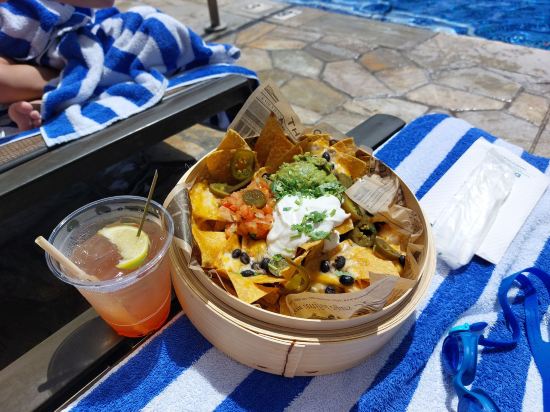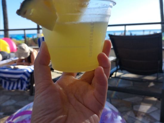 풀사이드에 듀크스 직원이 주문이 없거나 항상 어슬렁거리고 있기 때문에 그 자리에서 메뉴를 요청할 수 있습니다. 수영장에 들어가면서 술을 마실 수 있습니다.