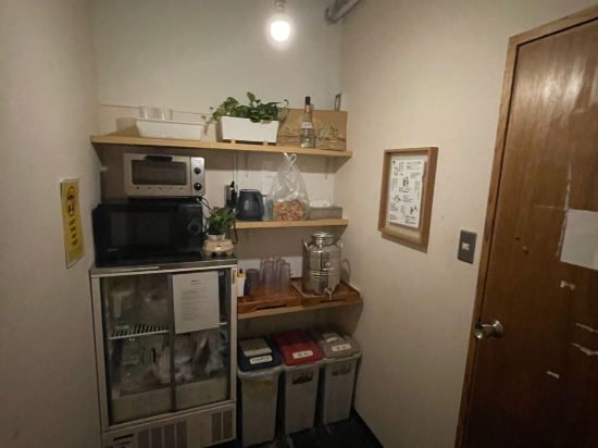 호스텔에는 음식을 단기적으로 보관할 수있는 냉장고가 있으며 오븐, 전자 레인지, 가스 스토브도 있습니다.  예산이 적은 관광객을 위해 비용을 절약 할 수 있습니다.