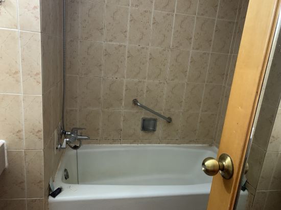 1. 욕조가 있고 장식 디자인을 볼 수 있습니다. 예전의 4 성급 호텔은 지금 황폐합니다 ...