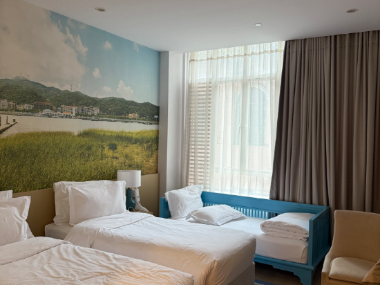 방의 벽화는 매우 디자인적이며 시설은 비교적 새롭습니다. 너무 새롭고 장식 맛이 있고 심각하지 않으며 큰 발코니가 있으며 날씨가 좋으며 경치를 볼 수 있으며 전반적인 만족도 👍