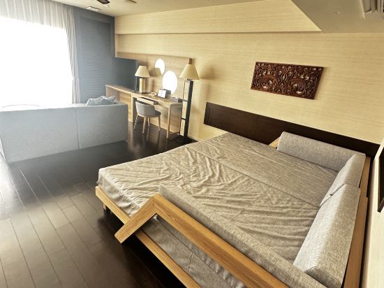 객실은 넓고 바다를 마주보고있는 4 층에 배치되어 있으며 전망이 좋으며 아침 식사는 일본식 샤브샤브와 서양식 아침 식사가 다른 장소에 있습니다. 해변에서 도보 2-3 분, 해변은 아름답지만 더 끈적합니다.