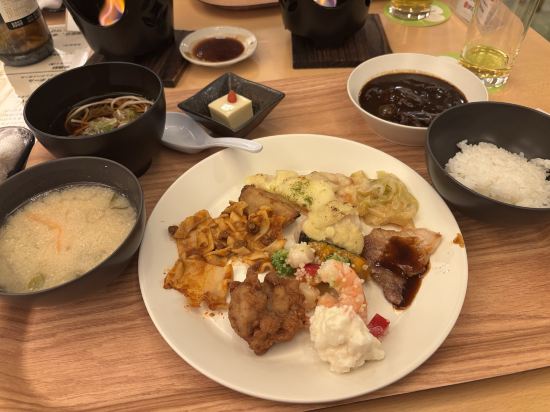 아침과 저녁은 대부분 뷔페 스타일이며 와규, 해산물, 야채와 같은 현지 재료를 사용합니다. 요리는 풍부하며 일부 객실 유형은 가이세키 요리를 선택할 수 있습니다.