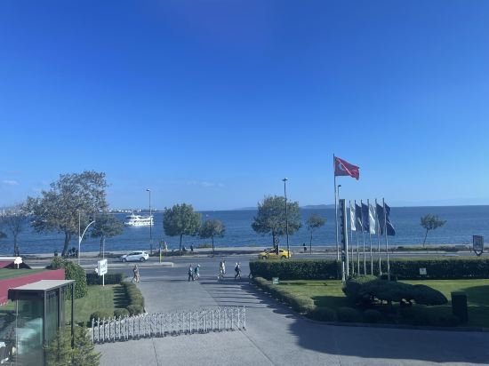 #방 창밖으로 마르마라 바다가 보입니다. 호텔 문을 나와 길을 건너 오른쪽으로 걸어가면 돌고래를 볼 수 있습니다.
