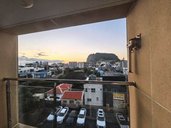 객실 베란다에서 찍은 사진입니다 확실한 일출봉 전망이지만 유리가 더러워서 감상하기에 방해돼요 일출봉까지 가까워요 객실 청소상태는 좋았지만 벽지가 지저분한 등 세월의 흔적이 많아요 일출봉 갈거면 추천합니다 직원들 서비스 좋았어요