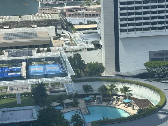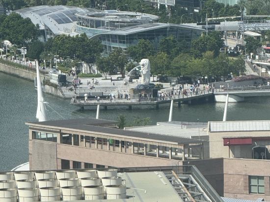 第一次住康萊德前台升級住1918雙床房,窗外可以看到魚尾獅,酒店泳池不是很大,圖上圓形泳池是對面的泛太平洋酒店,酒店步行到魚尾獅公園15分鐘,打車去濱海花園、金沙商城都是12新幣左右、酒店對面有商場,吃飯方便也有幾家日料餐廳、酒店打掃人員友好親切、由於不含早沒體驗早餐!