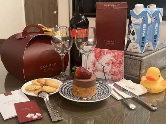 入住當天剛好是朋友的生日,前台小姐姐還送了一精美小蛋糕。酒店位置非常便利,出了地鐵枴一個彎就到了,這個黃金位置到周邊任何地方都很方便,周圍還有很多商圈。下次再到新加坡的話,依然還會繼續選擇康萊德。