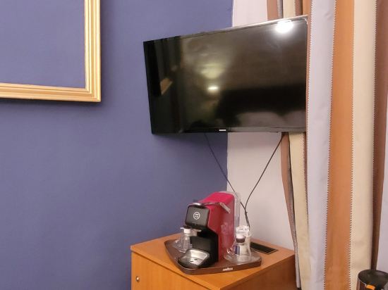 호텔 객실은 약간 낡았지만 좋은 상태를 유지하고 있지만 깔끔합니다.  냉장고, 커피 머신, 주전자 헤어 드라이어가 있으며 전체 구성이 충분합니다.