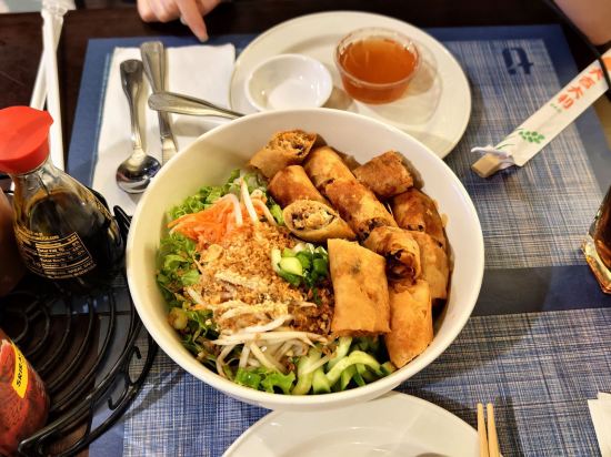 아래층에는 미국식 버거와 베트남 국수 가게가 있으며 레스토랑을 공유합니다. 아침에는 미국식 아침 식사가 줄을 서야하며 오후 5시에 베트남 국수가 열리지만 수요일과 목요일에는 가게가 문을 닫습니다. 25년 가을에 문을 연 것으로 알려진 리노베이션 중인 중식당도 있습니다.