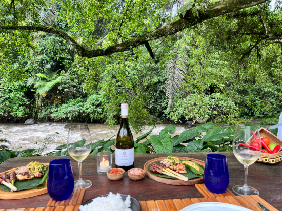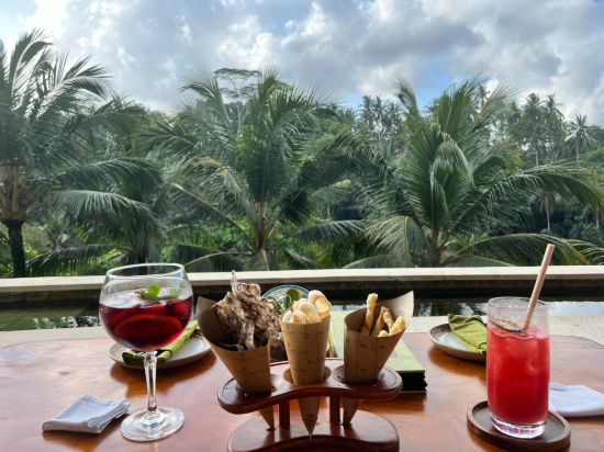 조식 레스토랑을 공유하는 인도네시아 음식 레스토랑, 수영장 옆 그릴 레스토랑, 계곡 옆 쉐프‘s 테이블 세 개의 레스토랑이 있어요. 그릴 레스토랑은 크게 추천하지 않고 칵테일 메뉴가 호불호가 굉장히 강해요. 쉐프’s 테이블은 월 수 금만 운영하고 예약을 해야하는데 당일에 이용가능 여부를 물어봤을때 이용할 수 있다고 했어요. 요금은 1인 2백만 루피아였고 7코스로 나와요.